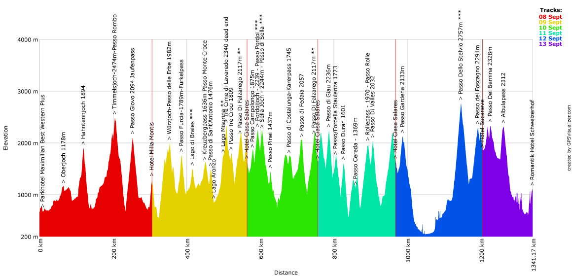 Zoom in on a certain date track by clicking the arrow of the date. Click on the icon for a hotel and get more info. Click on name of the hotel to visit their website.